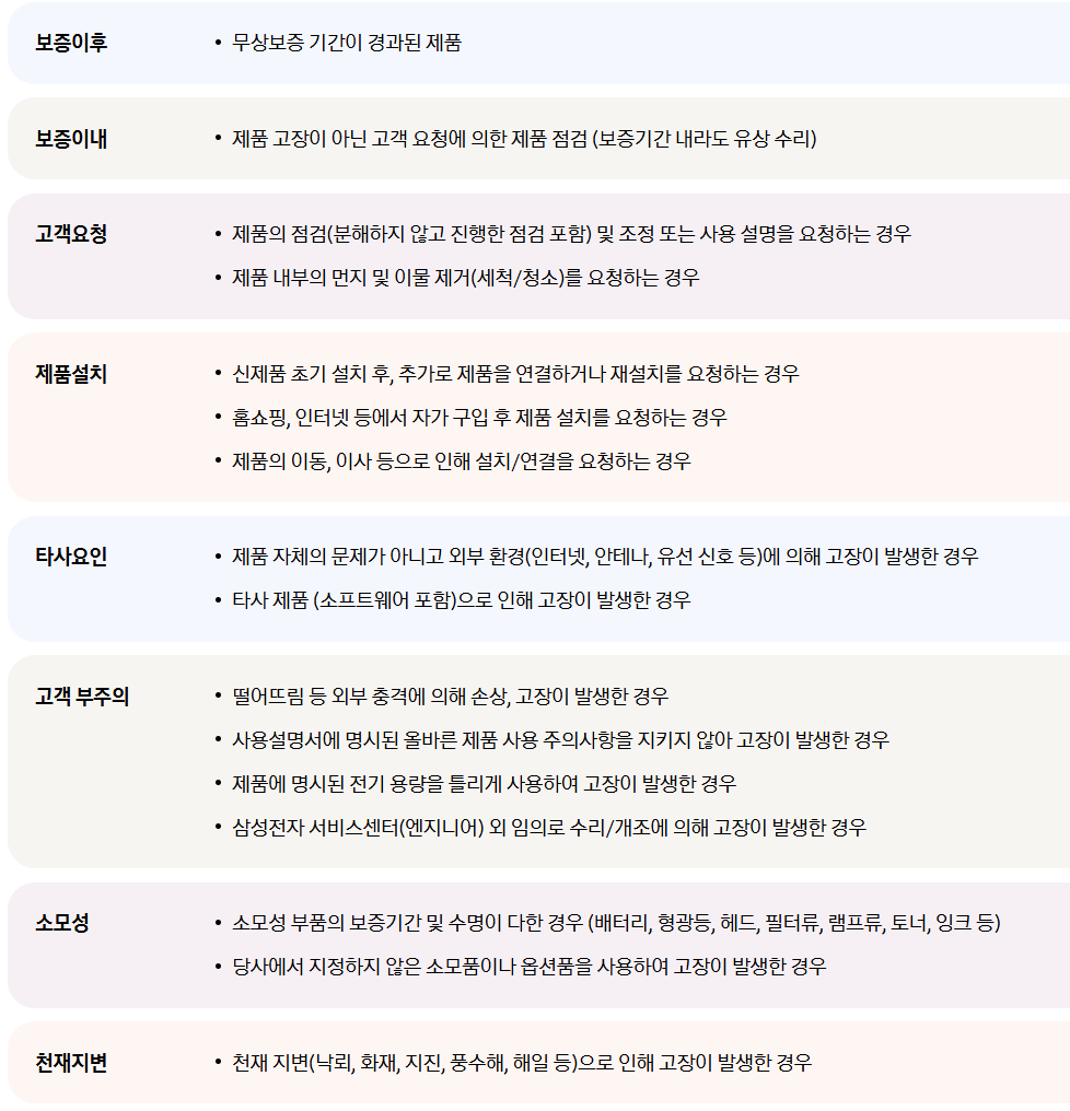 보증기간 내에는 무상 서비스, 그 외는 유상 처리될 수 있습니다.